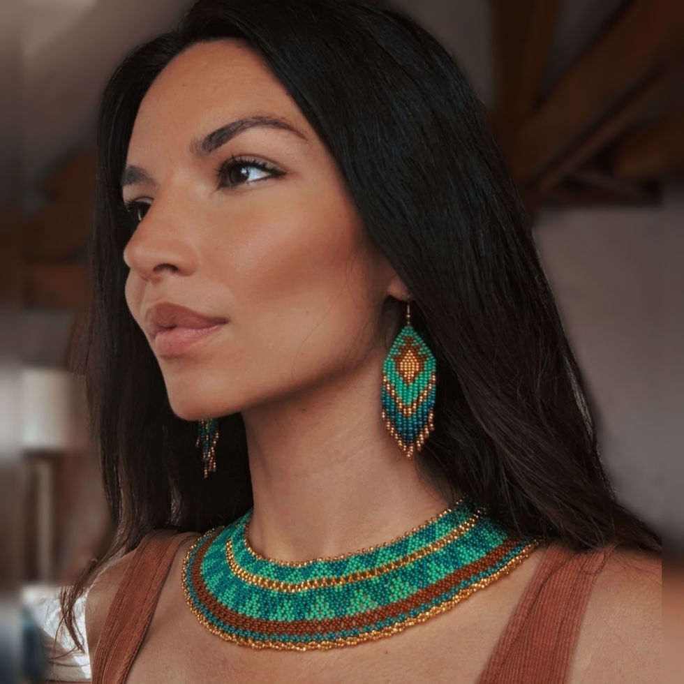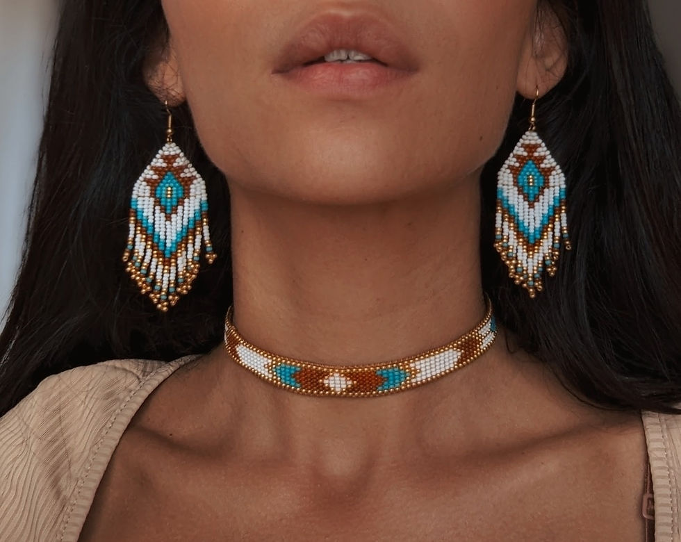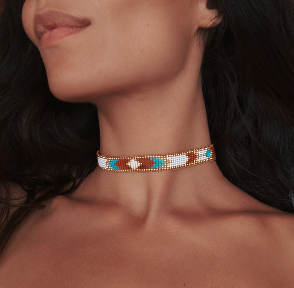 Tissées à la main, les créations d'Agua Del Rio s'inspirent des techniques de tissage et des motifs des cultures autochtones colombiennes, revisités avec une interprétation libre et moderne.